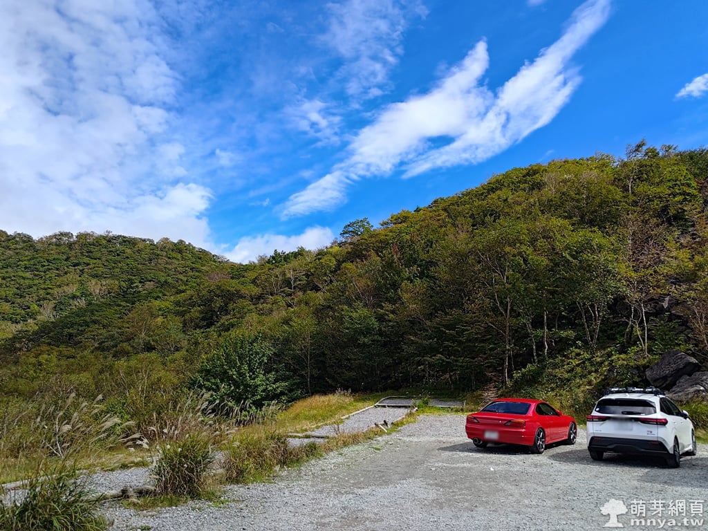 ▲ 鳥居峠的主要停車場,為碎石鋪面但空間寬敞,可容納多輛車。從這裡步行一小段碎石路即可抵達觀景區。