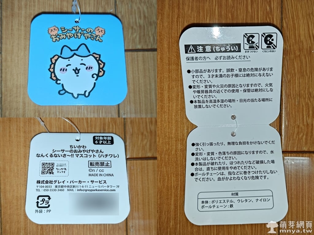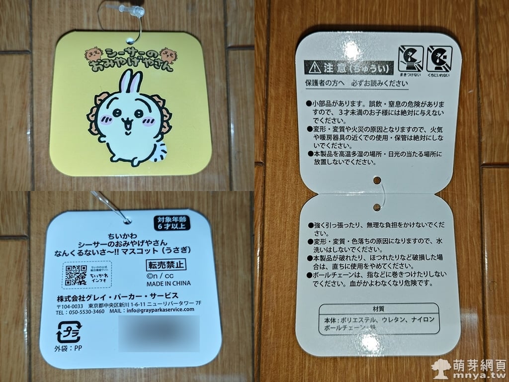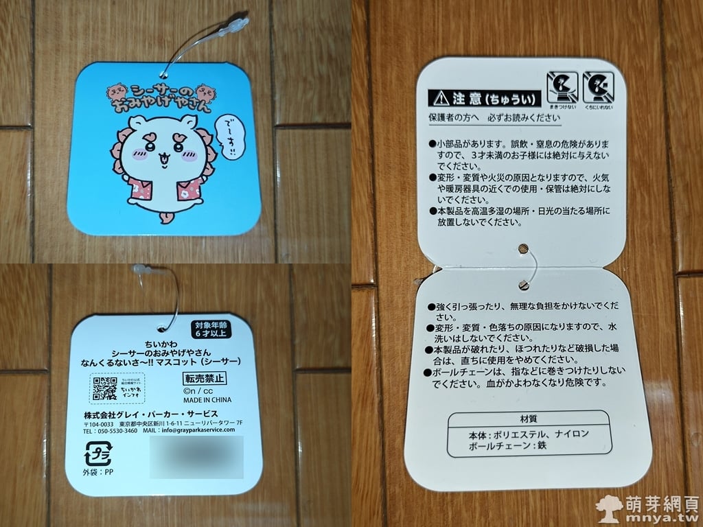 ▲ 吊牌,背面為詳細商品資料與安全說明。