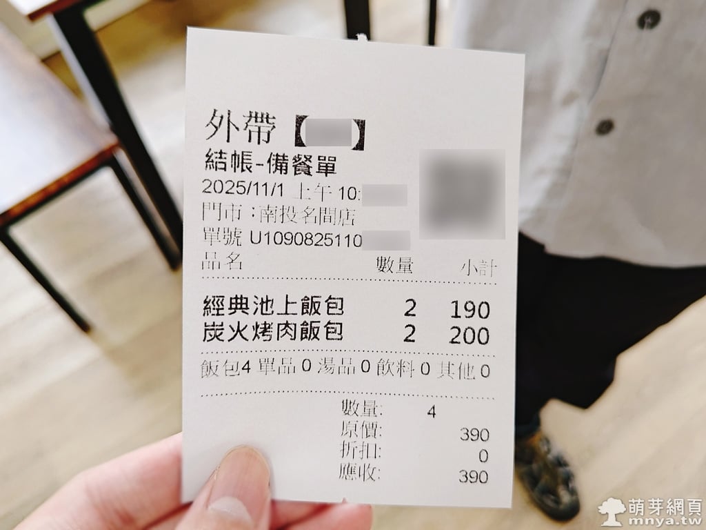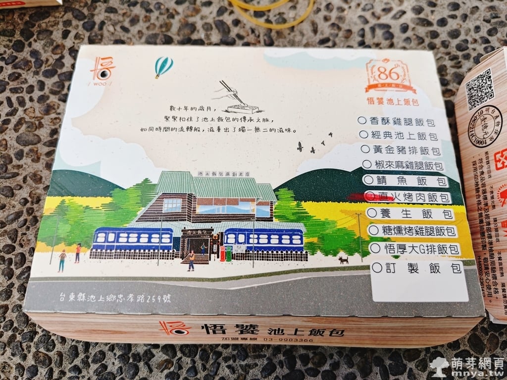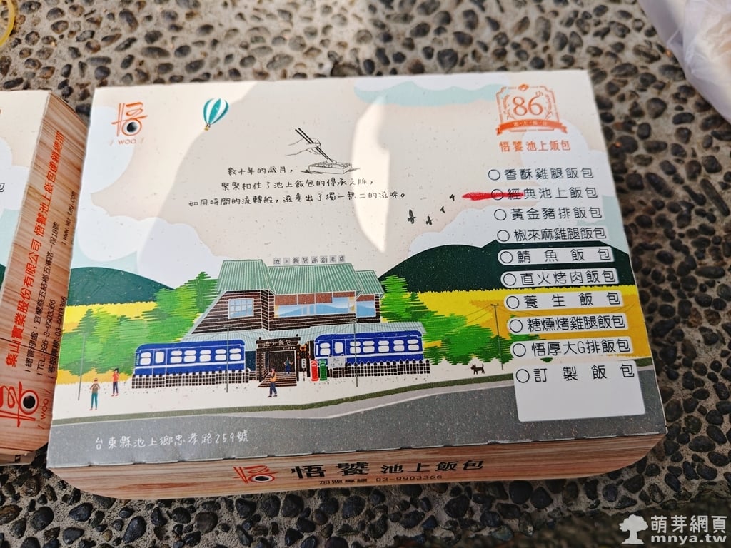 根據官網敘述,「悟饕池上飯包」承襲 1939 年起池上飯包的悠久歷史,以在地池上米為基底,搭配各式經典配菜,如卜肉、烤肉乾與炸蝦餅,展現台灣鐵道便當的原味精神。品牌標誌中的「悟」象徵對米食文化的思考與用心,融合筷子、文化底蘊與人本關懷。1999 年正式命名為「悟饕池上飯包」,積極推動全台連鎖及海外發展,堅持「飯包是做給出外人吃的,一定要用心做」的理念,讓家鄉的溫暖滋味陪伴每一位旅人。這次摸的基石在水里,順路來名間這家店外帶便當作為午餐享用。