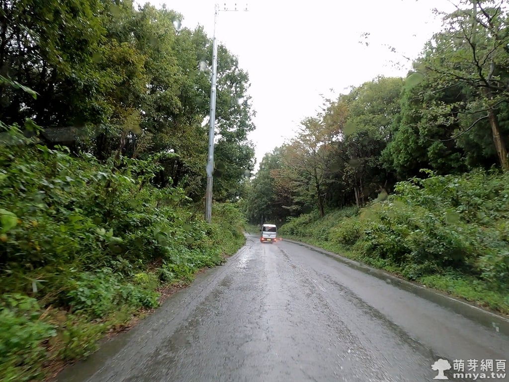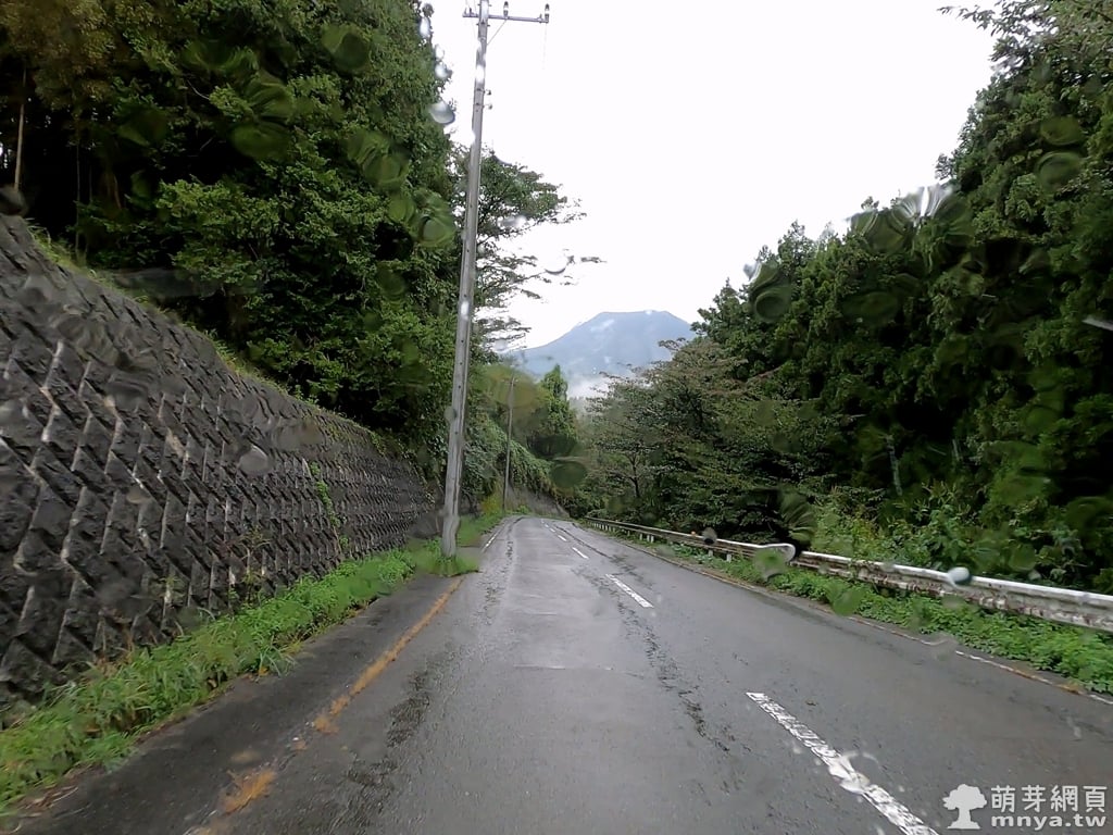 ▲ 霧氣瀰漫的林間上坡,赤城山南麓特有的濕潤氣候展露無遺。沿線高大的杉樹形成天然樹牆,使這段路在雨天別具山林氛圍。