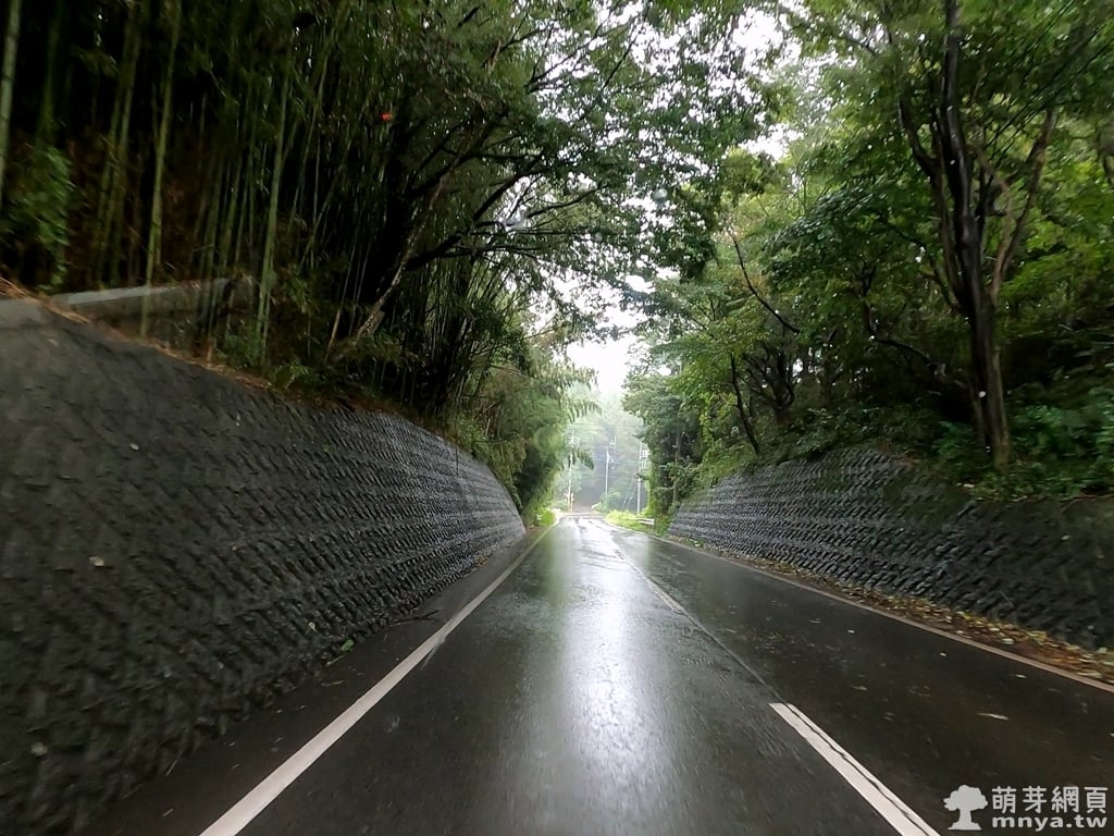 ▲ 部分路段切開小山丘,兩側設有水泥擋牆與樹林圍繞。即使是陰雨天,綠意仍相當濃厚,顯現農道與自然環境融合的特色。