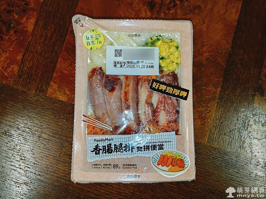 🍱 香腸腿排雙拼便當:熱量 652 大卡、362 公克,售價新台幣 89 元。
