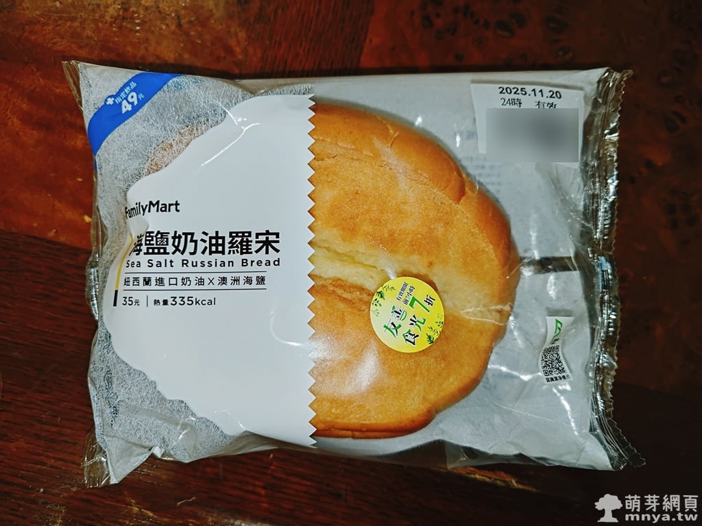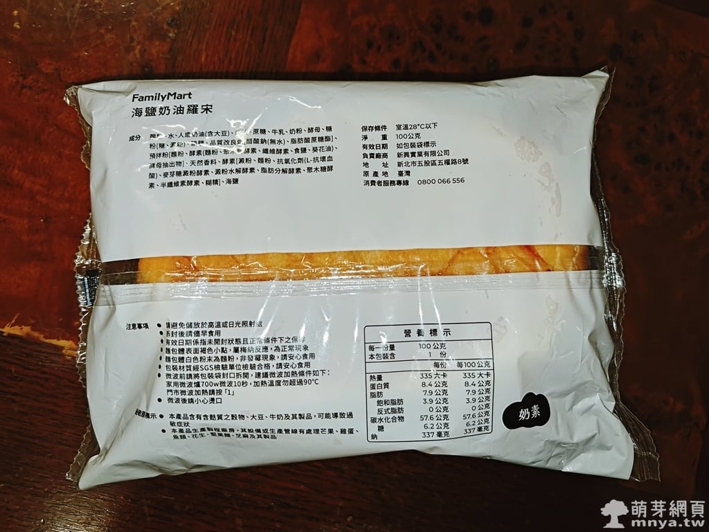 🥐 海鹽奶油羅宋:熱量 335 大卡、100 公克,售價新台幣 35 元。