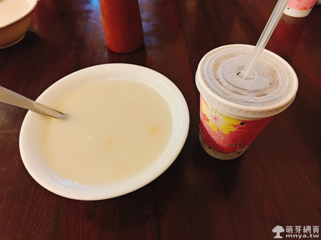 ▲ 排餐附玉米濃湯一碗,點餐就有古早味紅茶(可免費續杯)。