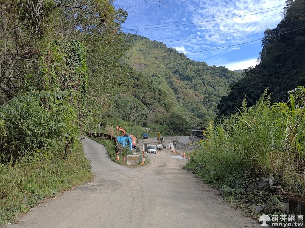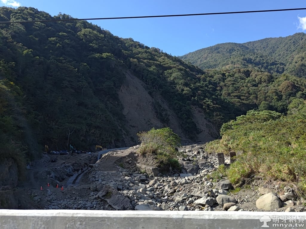 ▲ 回程拍攝來時在神木巷第一個遇到的地基流失處,遠方可見台21線(新中橫公路)的愛玉橋。