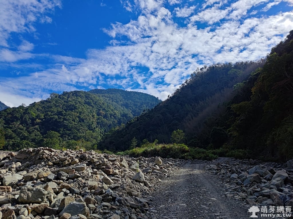 ▲ 整個溪谷都堆滿了石塊,土石路直接開在河床上。