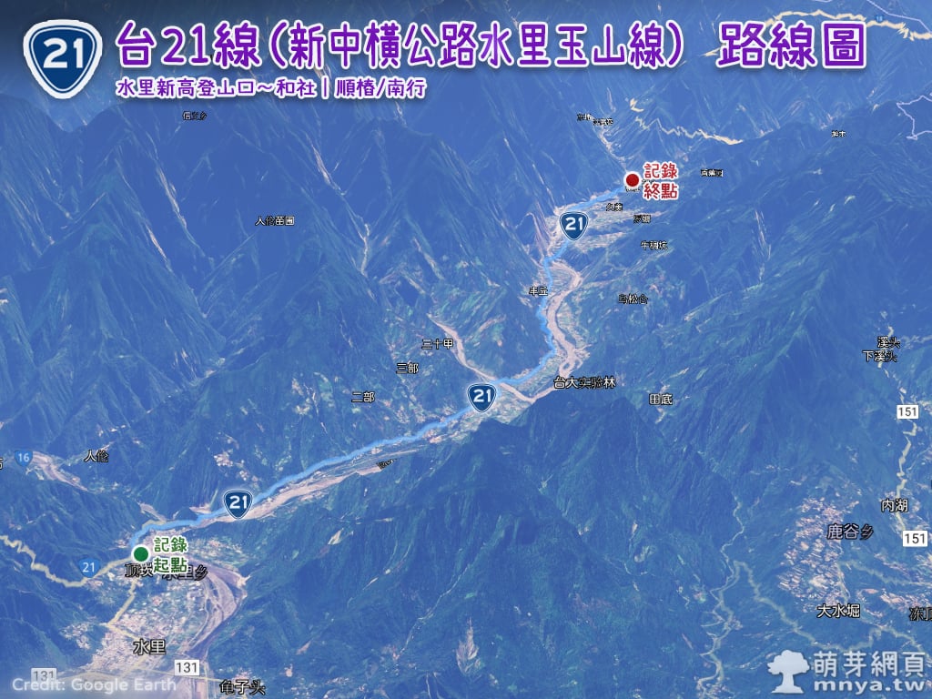 ▲ 台21線(新中橫公路水里玉山線,和社~塔塔加)路線圖。
