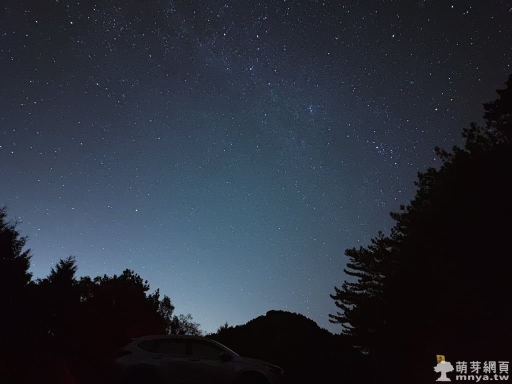 ▲ 在東埔山步道停車場拍攝的夜空,下方山頭是東埔山。