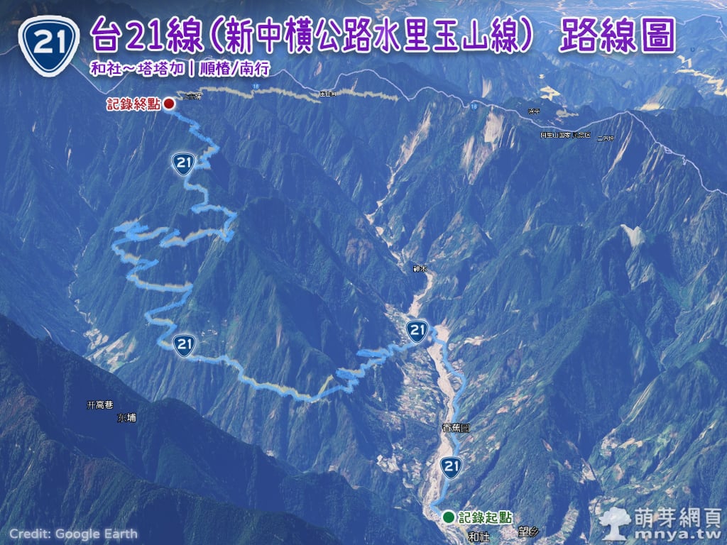 ▲ 台21線(新中橫公路水里玉山線,和社~塔塔加)航跡圖(GPX 下載)。