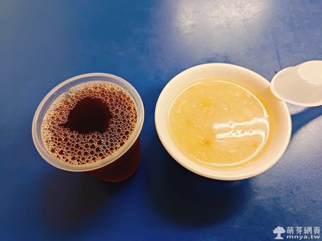 ▲ 自己裝的古早味紅茶跟玉米濃湯。