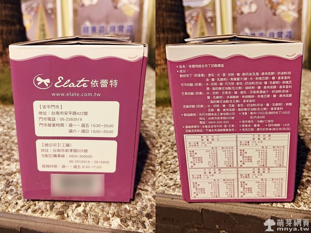 ▲ 側邊標示門市與聯絡資訊,包裝完整紮實,盒型方正好提,實際攜帶時不易擠壓變形。