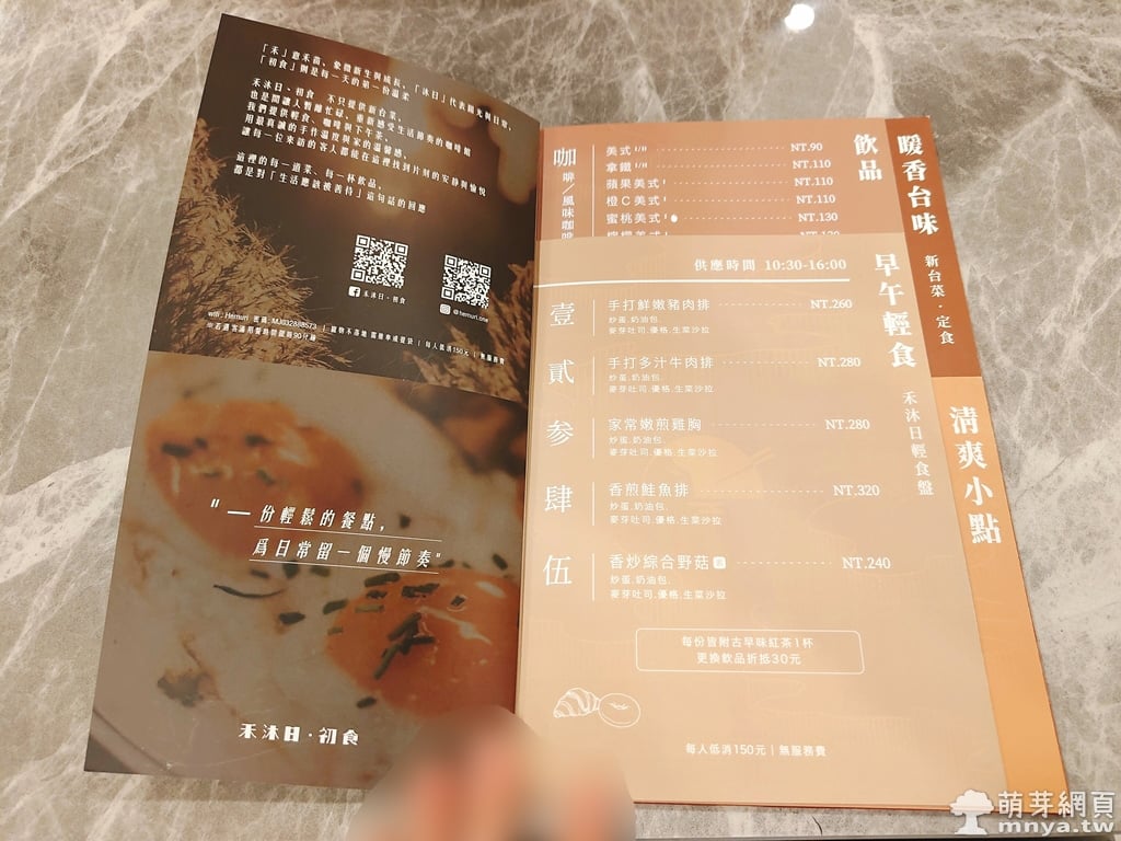根據菜單介紹,這是一家融合了新台菜與咖啡廳靈魂的溫馨空間。店名蘊含著對生活的細膩祝福:「禾」象徵新生與成長,「沐日」代表陽光與日常,而「初食」則是對每一天的第一份溫柔。店內提供精緻輕食、手沖咖啡與優雅下午茶,強調以「手作的溫度」傳遞如家般的溫馨。無論是想尋求一頓暖心的正餐,還是渴望在午後靜謐的角落享受片刻,這裡都能讓每一位到訪的客人,在繁忙的城市中找到屬於自己的愉悅與寧靜。