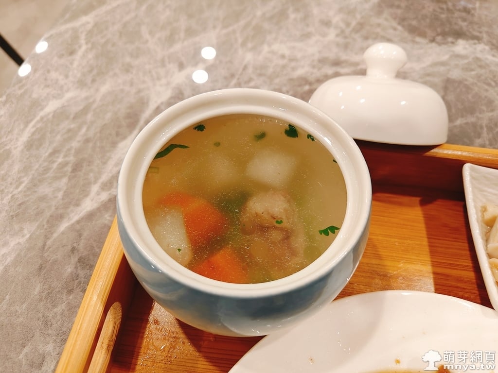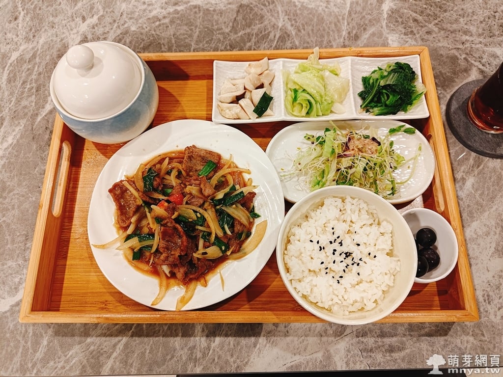 我點了「蔥香爆牛肉 定食(270元)」和「古早味紅茶(冰,+20元)」;康同事點了「麻油香赤肉 定食(280元)」和「鮮奶茶(冰,+60元)」。飯量適中(可以免費再加一碗),主菜一大盤,搭配生菜沙拉、三道小菜及一碗熱湯,相當豐盛,每道都很美味,吃起來很滿足,口感佳,好吃 😋。飲料量較少,算是稍微可惜的地方。