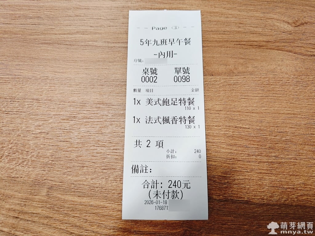 20260118【埔心美食】5年九班手作早午餐:美式飽足特餐、法式楓香特餐