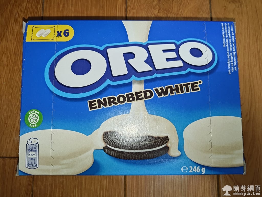 在包裝設計與規格上,這款產品展現了精緻的歐系風格,每盒重量約 246 公克,內部貼心地將餅乾分成 6 個獨立小包裝,每包裝內含有兩片脆皮夾心餅乾,這樣的設計不僅方便控制食用量,也能確保每一口都是最完美的酥脆狀態。購入價格約為新台幣 139 元,以進口餅乾而言,其 CP 值相當不錯。成分方面,除了經典的低脂可可粉、麵粉外,最核心的白巧克力外層是由乳木果油、脫脂乳粉與乳糖等調配而成,呈現出絲滑的乳香。實際品嚐時,外層白巧克力的濃郁奶香味率先在舌尖化開,緊接著是脆皮帶來的咔滋聲響,隨後則是熟悉的可可餅乾與香草夾心交織出的豐富韻味,甜度雖然較高,但對於白巧克力控來說,絕對是一次極致的享受。