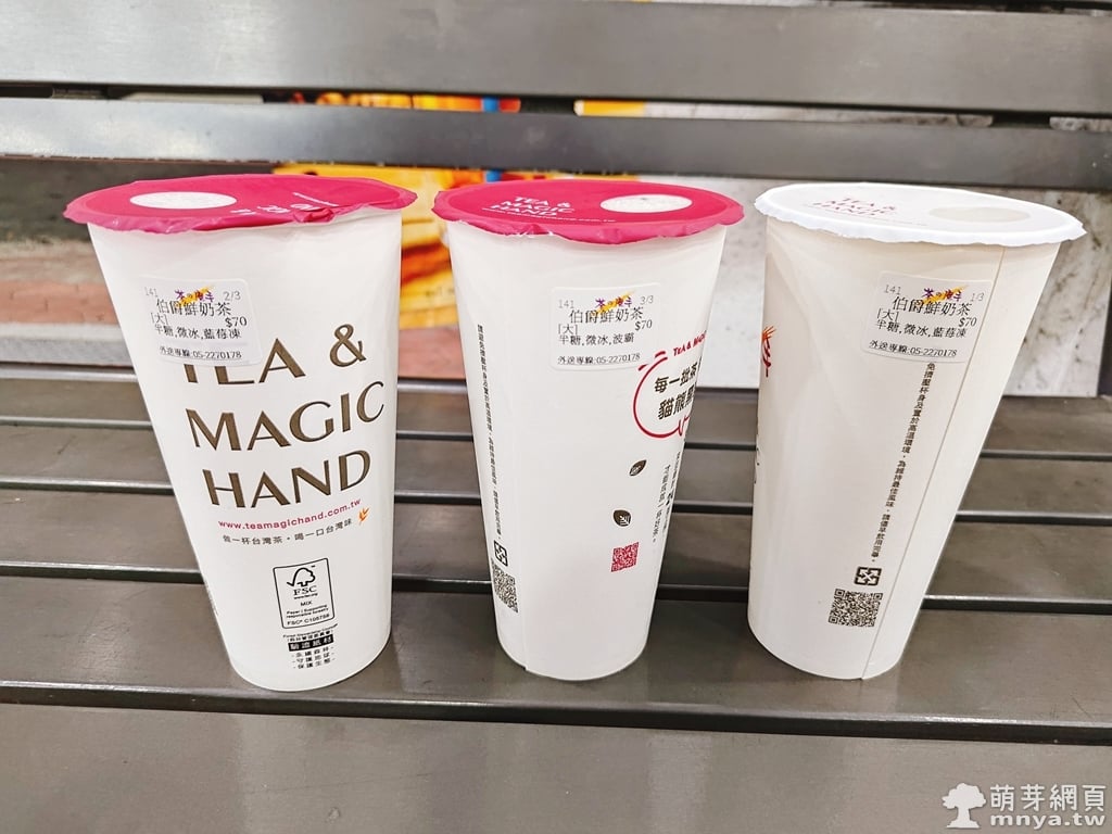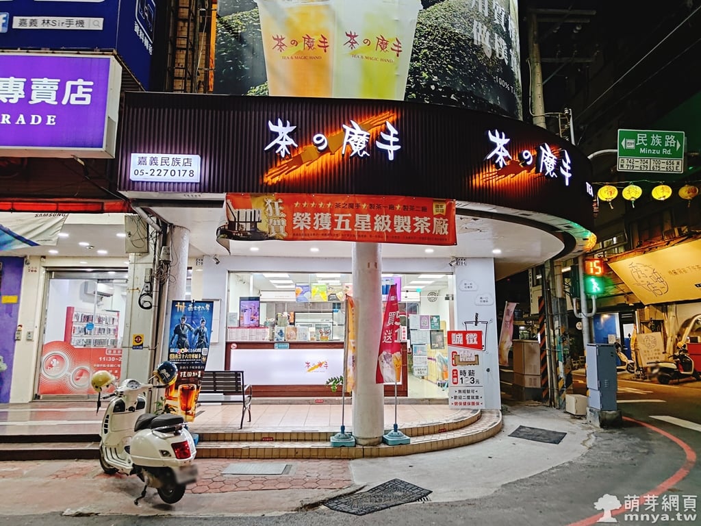 「茶の魔手(嘉義民族店)」位在民族路704號,即嘉義市區內。店家提供台灣茗茶、伯爵紅茶、咖啡、新鮮現榨、台灣純綠、頂級生乳拿鐵、調和風味、台灣青茶、冬季限定、台灣烏龍、經典風味和陳年普洱等系列飲品,為一家連鎖手搖飲料店。提供冰量(正常/少冰/微冰/去冰/常溫/熱飲)及糖量(正常/少糖/半糖/微糖/二分/一分/無糖)調整,可加料(+10 元有白梅、脆梅果/+15 元有波霸、珍珠、QQ、椰果、蜂蜜、冬瓜、梅子凍、仙草凍、藍莓凍、咖啡凍/+20 元有寒天珍珠、膳實珍珠、紅豆、檸檬汁、布丁、多多/+25 元有蘆薈),全品項買五送一。外帶為主。先付款 💸,有發票可存載具 🧾。現點現做,等候時間約三至五分鐘內。