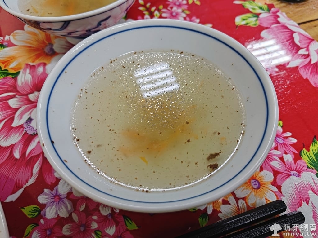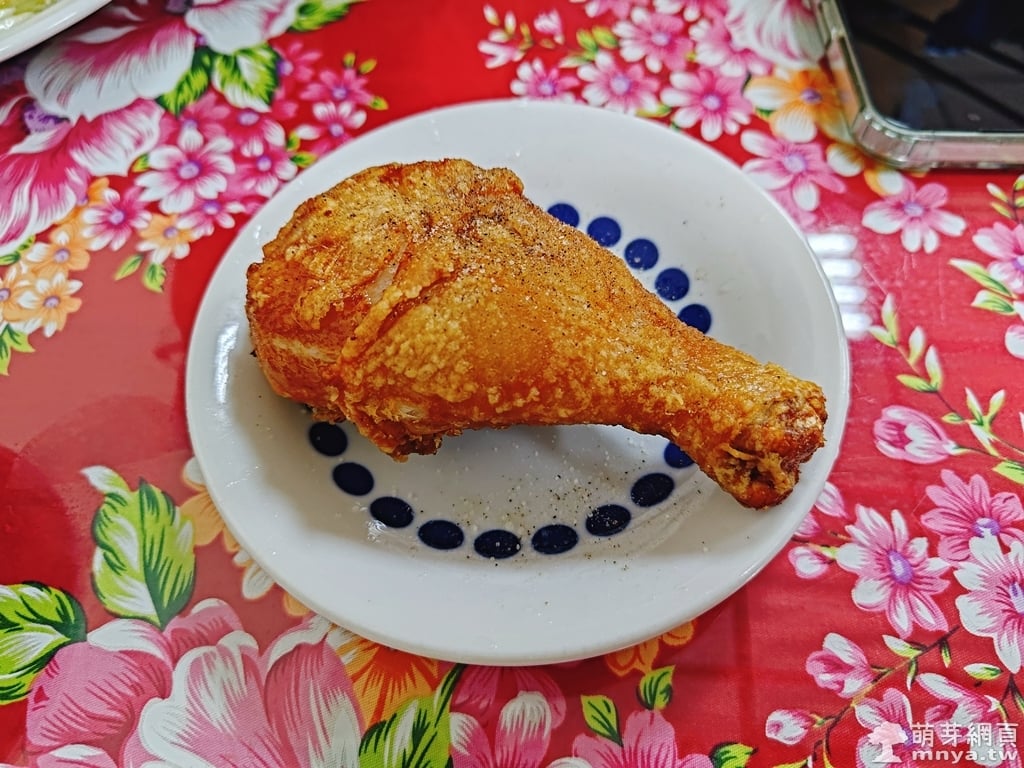 我點了「紅燒肉便當(110元)」;K 同事點了「炸棒腿便當(120元)」;L 同事點了「鹹豬肉便當(110元)」。很可惜排骨飯、焢肉飯當下沒有,因此改點其他餐點。炸棒腿當下要等現炸,因此是先送飯菜後上主菜。便當送上後會再送上熱湯。肉本身酥脆,白飯偏硬,部分青菜死鹹有些影響口感,份量足夠,可吃飽。