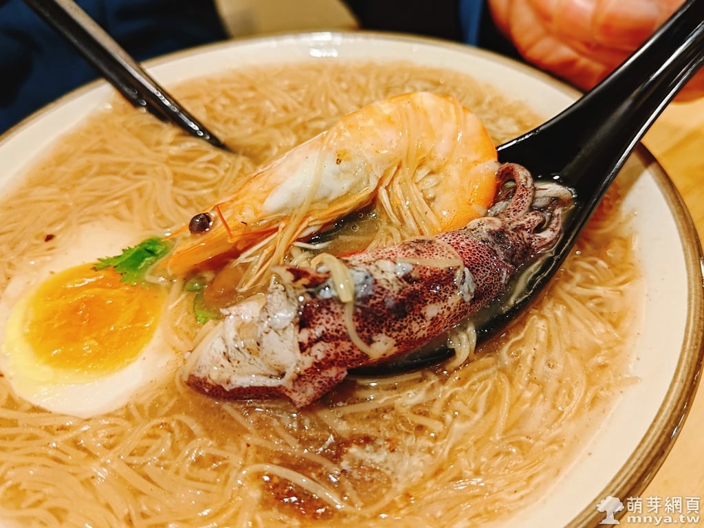 ▲ 招牌五寶麵線內有蝦子、小卷、排骨酥肉、溏心蛋等配料。