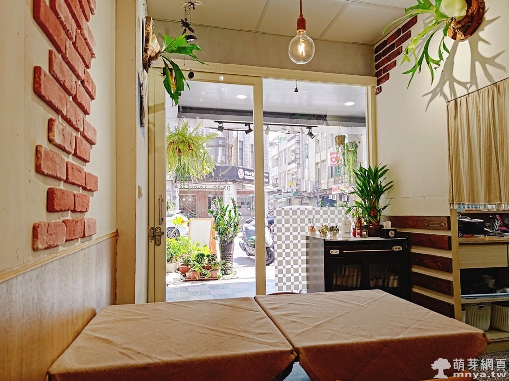 ▲ 從店內往門外望去的視野,大片落地窗採光良好,門口擺放了許多綠意盎然的盆栽,讓室內與繁忙的街道形成一種悠閒的對比。