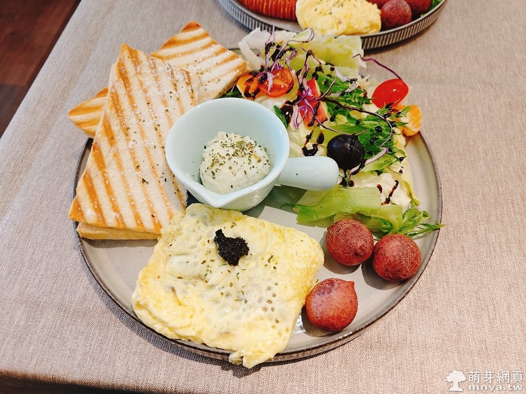 ▲ 松露蛋菇菇早午餐,滑嫩的蛋上方豪邁地放上一球濃郁松露醬,搭配豐富的菇類內餡。手工薯泥、地瓜球與清爽沙拉達成味覺平衡,是蕈菇愛好者的絕佳首選。