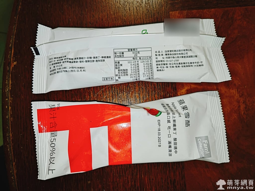 🧊 FMC 蘋果雪酪冰棒:熱量 122.1 大卡、95 公克,售價新台幣 40 元。