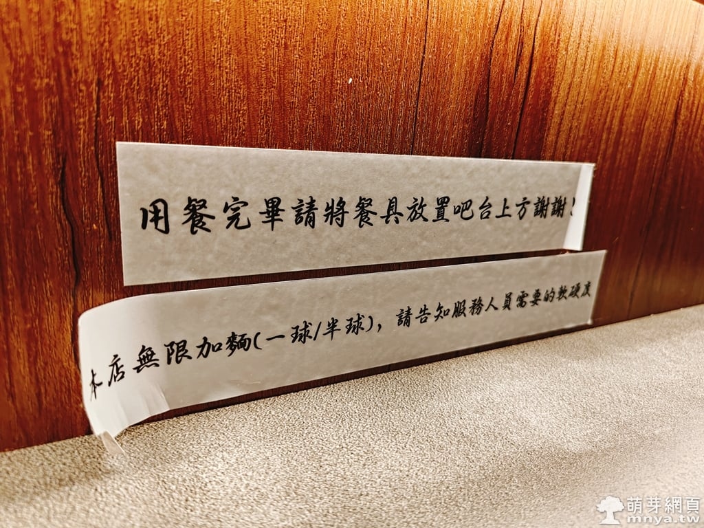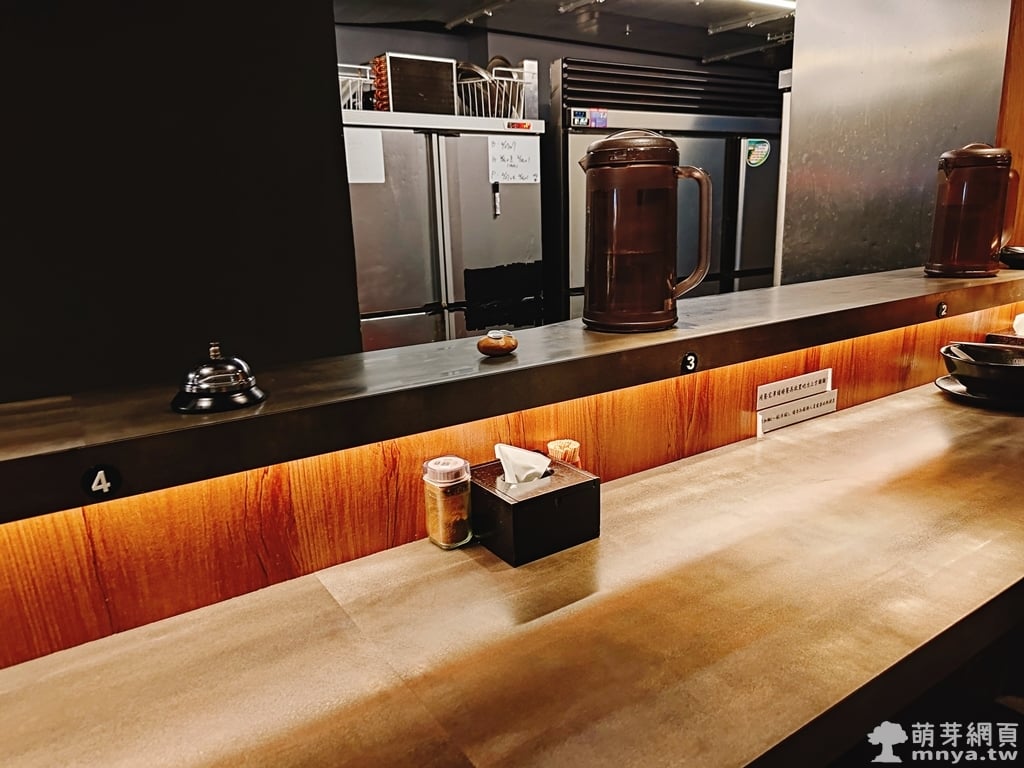 ▲ 每個座位都有編號,吧台上有冰開水可自取,若需要服務或加麵可按鈴呼叫店員。