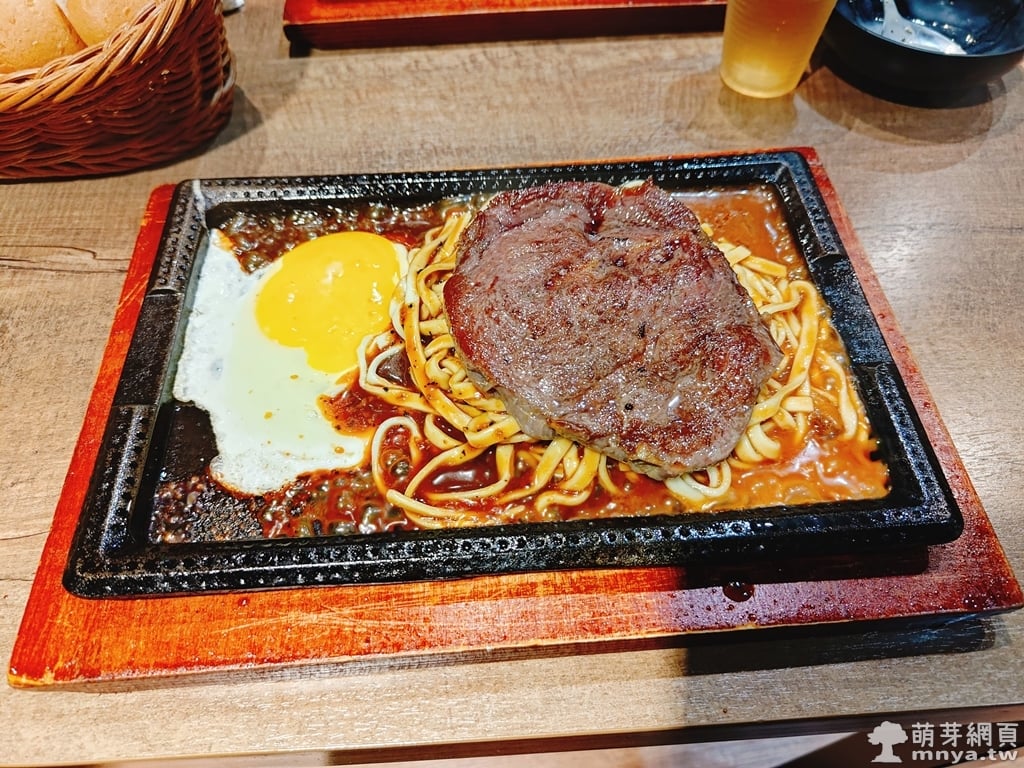 我點「莎朗牛排(雙醬,220元)」;家人點了「莎朗牛排(雙醬,220元)」及「嫩煎雞腿排(雙醬,210元)」。麵條是粗扁麵,麵量足,沙朗牛排厚又嫩,口感很好,另有煎蛋搭配。還有爆漿餐包,搭配可無限自取的玉米濃湯、餅乾跟飲料,很好吃又可吃飽飽 😋。