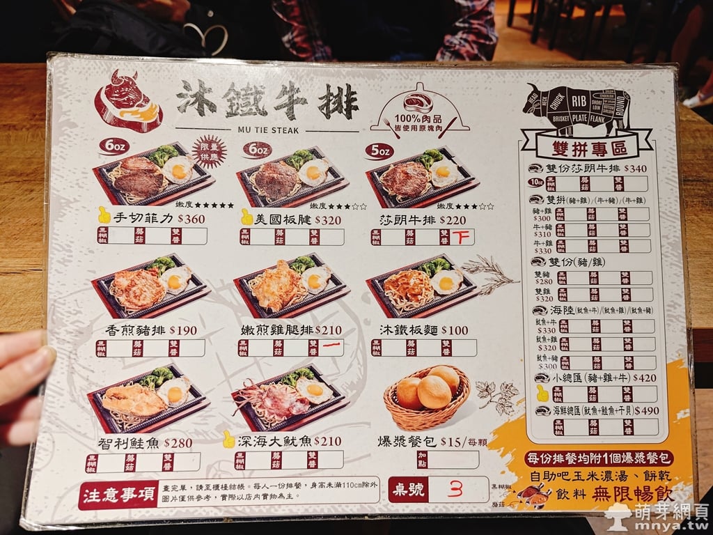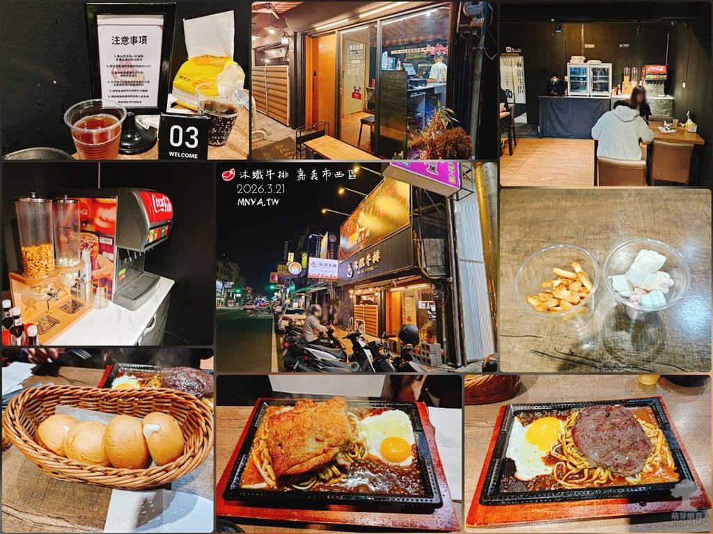 「沐鐵牛排」位在民族路676號。店家提供牛排、豬排、雞腿排、鐵板麵、魚排及雙拼系列,可口可樂系列、棉花糖及飛機餅乾、玉米濃湯可免費無限自取,每份排餐均附 1 個爆漿餐包,為一家牛排店。客滿時在外等候入座,有點餐單,劃記點餐,先付款 💸,無發票及收據 🧾,僅能以現金付款。有內用空間,環境整潔。餐具及醬料自取 🥢。現點現做,約 12 分鐘左右餐點全送上。店內有廁所可利用。
