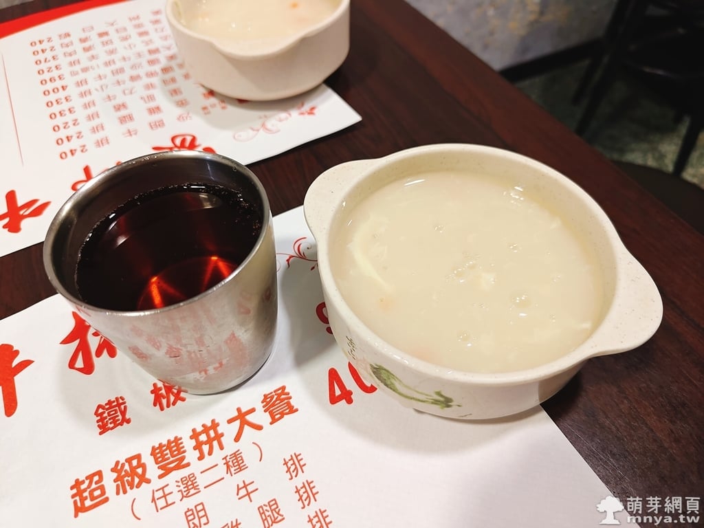 「家鄉牛排館」位在明燈路三段80號,瑞芳市區內,瑞芳火車站旁。店家提供牛排、雞腿排、豬排、羊排、蝦、鐵板麵和雙拼等,口味有蘑菇、黑胡椒、前者各半、麻辣,排餐附餐包一個、一碗玉米濃湯,紅茶和冬瓜茶可免費無限自取,為一家牛排店。有價目表,口頭點餐,後付款 💸,無發票及收據 🧾,可現金或 LINE Pay 付款。有內用空間,座位不多,尖峰時間基本上會客滿。餐具由店員提供,飲料杯為可重複利用的鋼杯,醬料自取 🥢。現點現做,約 12 ~ 15 分鐘左右餐點全送上。店內無廁所可利用。